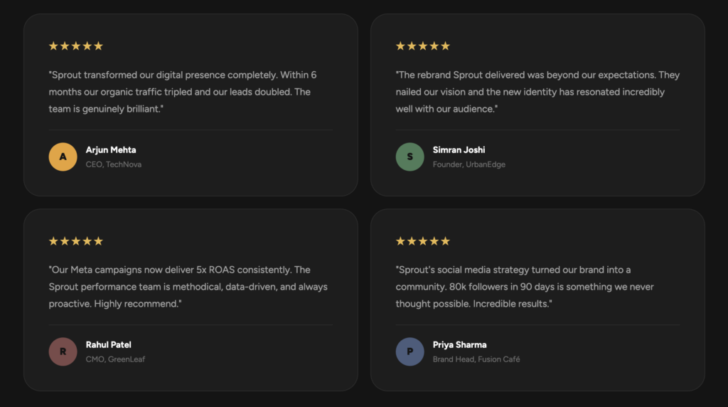 We work with businesses of all sizes — from early-stage startups to established enterprises. Our packages scale to fit your budget and ambitions.